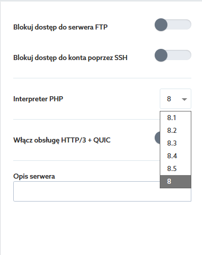 - Dokonaj zmiany interpretera PHP na hostingu na wyższy (objęty bezpłatnym wsparciem).