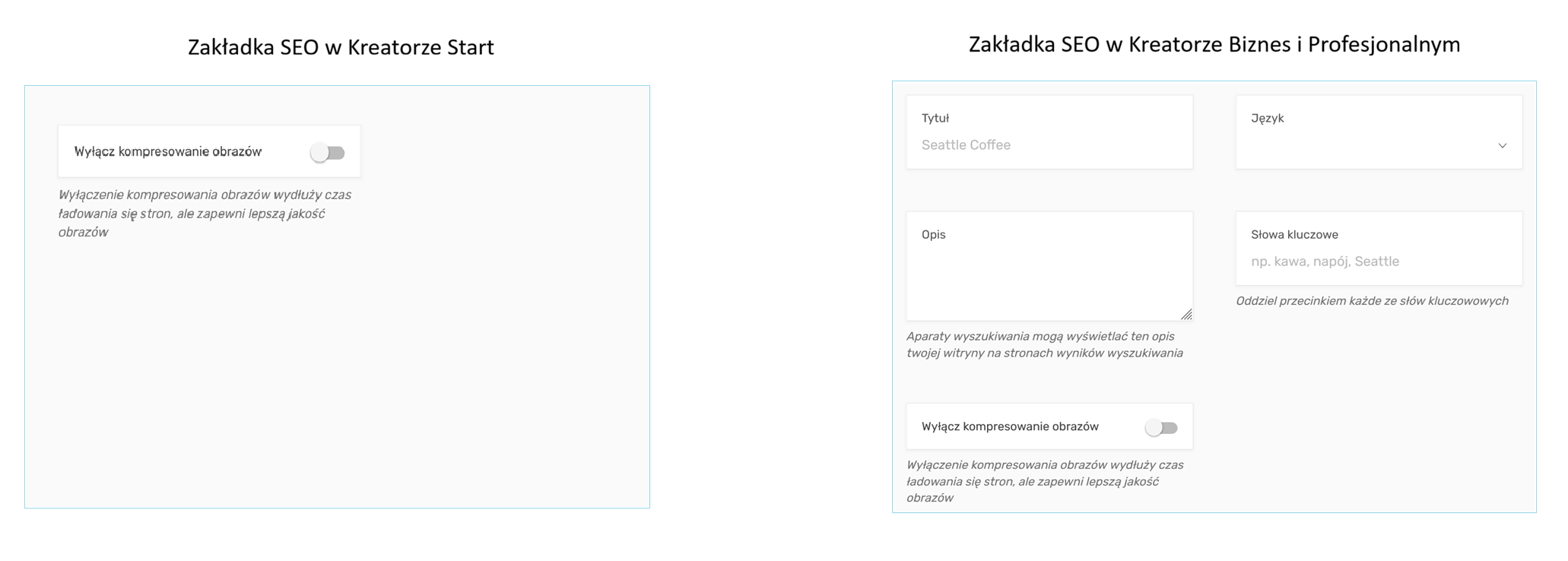| SEO | podstawowe | rozszerzone | rozszerzone |