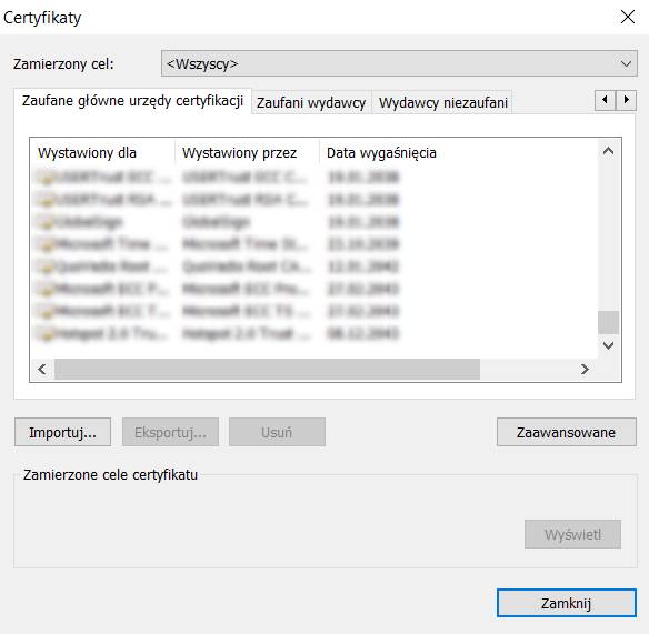 W takiej sytuacji najskuteczniejszym rozwiązaniem nie jest usuwanie dostawców certyfikatów (co mogłoby zablokować dostęp do innych stron), lecz wyczyszczenie stanu SSL.