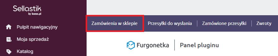 - W panelu pluginu Furgonetka.pl przejdź do zakładki Zamówienia w sklepie.